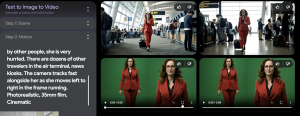 - Interactive Exploration: As I input simple, conversational prompts (for example, describing a wide shot in a modern airport with a businesswoman in a red pant suit), notice how Veo responds. I also share little hacks, such as using a green screen in the text-to‑image‑to‑video workflow to ensure character consistency.